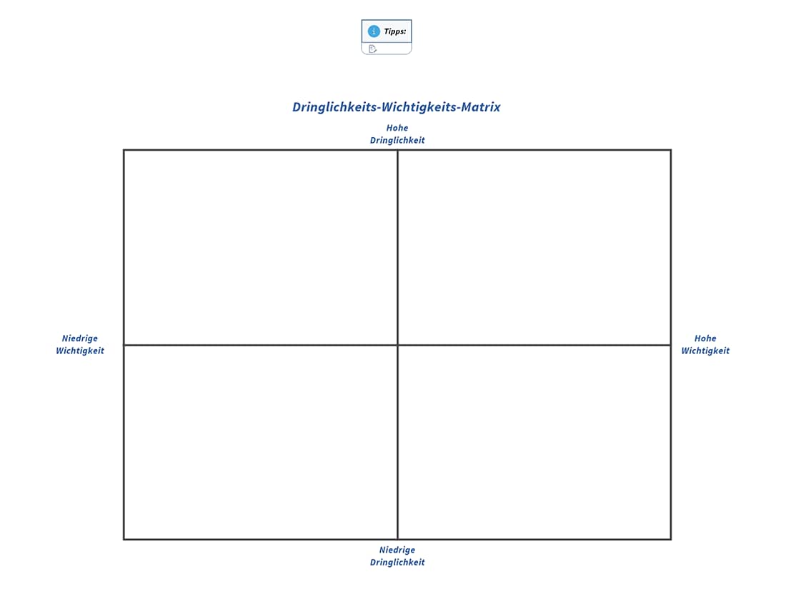 Mit dieser Vorlage ordnen Sie die beim Mindstorming gewonnenen Ideen in einer Matrix an, je nachdem wie dringlich und wichtig sie für den Auftrag des Teams sind.