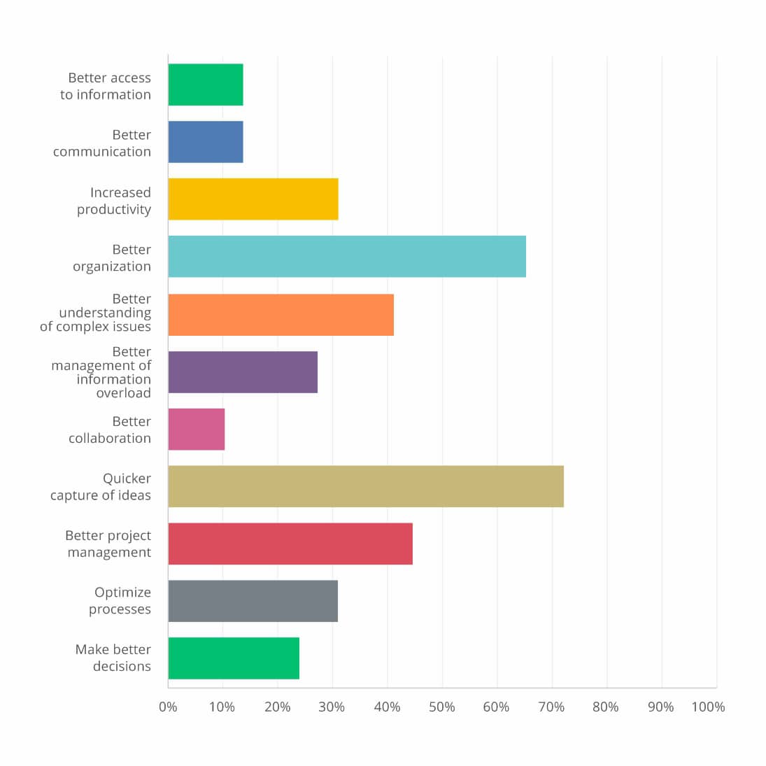 Presenting content, illustrating processes, and assisting quality management, are also among the top benefits of MindManager cited by participants.